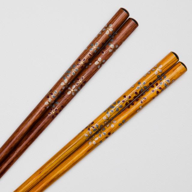 幸せの箸渡し。普段使いの生活箸として大活躍。ギフトや記念日にも喜ばれ、気に入って使ってもらえるお箸です。 日本古風なデザインですので海外の方へのプレゼントにもぴったりのギフトになりますね。お箸は毎日使う物ですのでご贈答に適しています。かさばらないのでお返しにも喜ばれます。ギフトBOX入りですのでさらに高級感を演出してくます。 ギフト包装は無料で対応しております。天然木製 箸 5膳セット 彩り花 ギフトBOX入り お箸 おはし