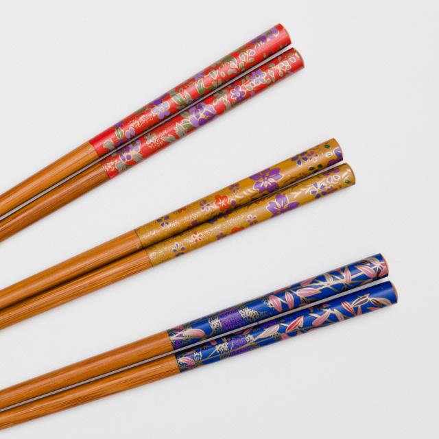 幸せの箸渡し。普段使いの生活箸として大活躍。ギフトや記念日にも喜ばれ、気に入って使ってもらえるお箸です。 日本古風なデザインですので海外の方へのプレゼントにもぴったりのギフトになりますね。お箸は毎日使う物ですのでご贈答に適しています。かさばらないのでお返しにも喜ばれます。ギフトBOX入りですのでさらに高級感を演出してくます。 ギフト包装は無料で対応しております。天然竹製 箸 5膳セット 華友禅 ギフトBOX入り お箸 おはし