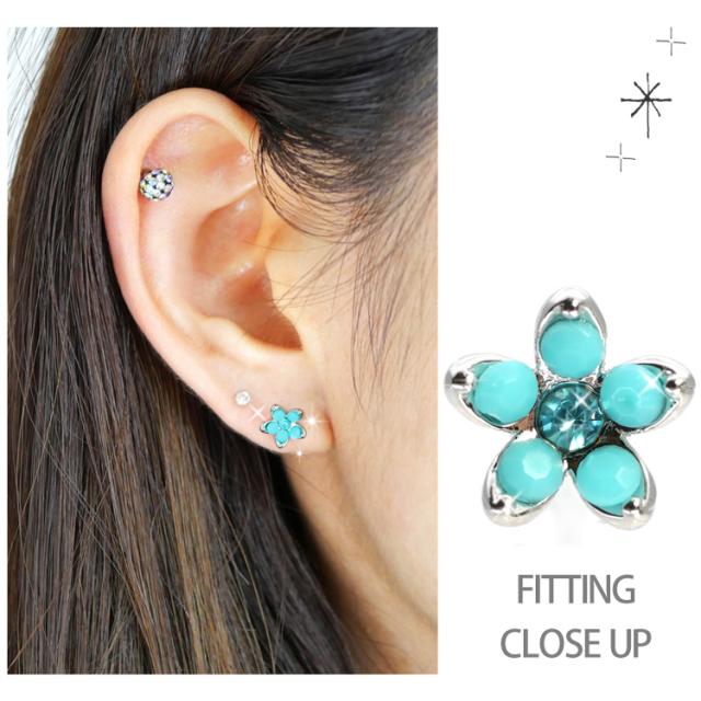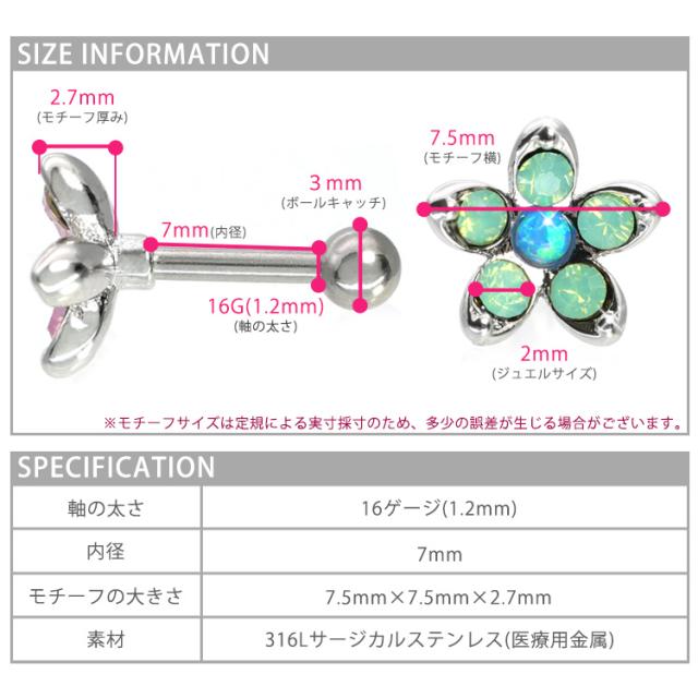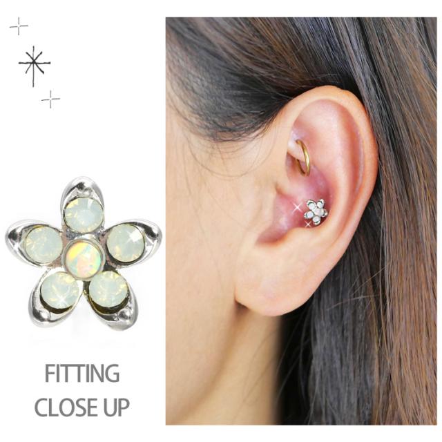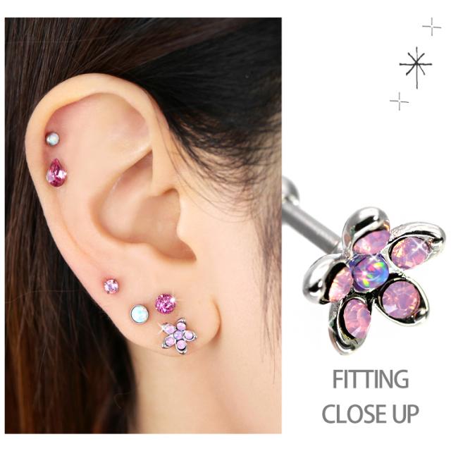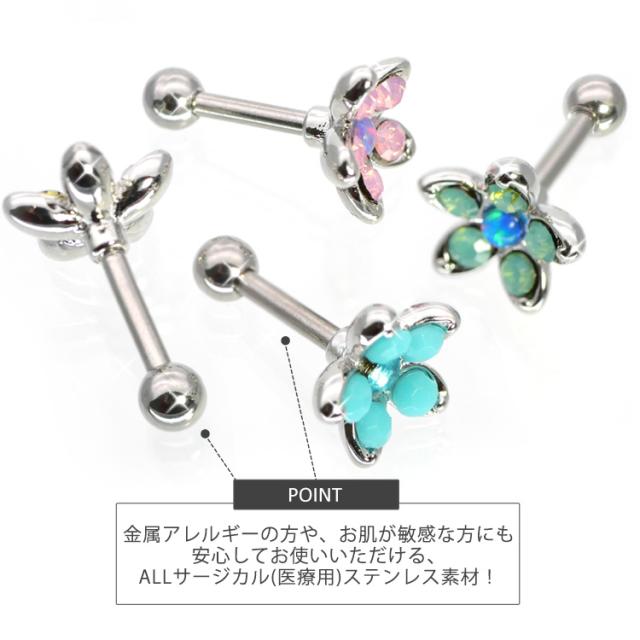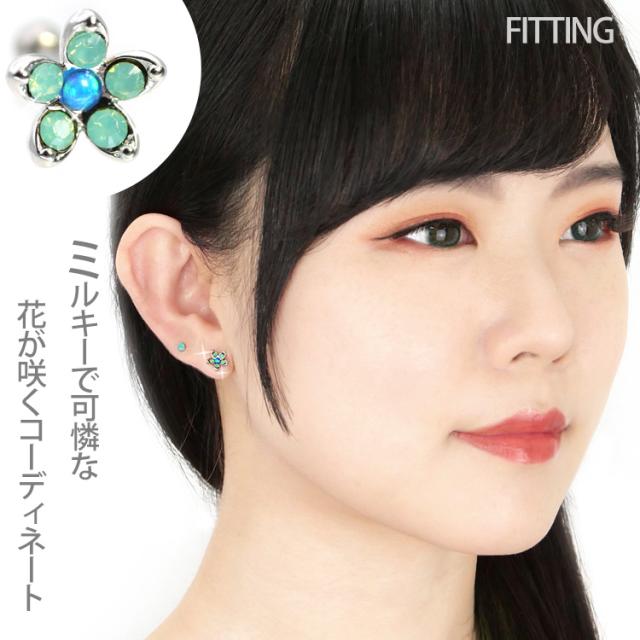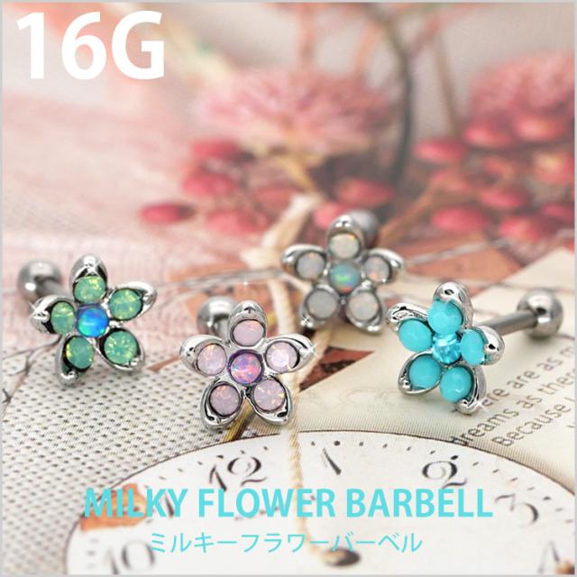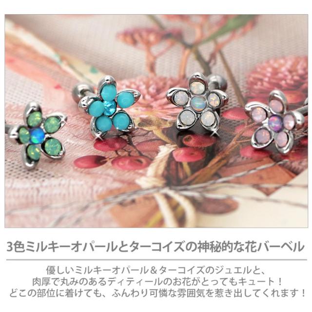 ピアス 軟骨 ボディピアス ミルキーフラワーバーベル 16G