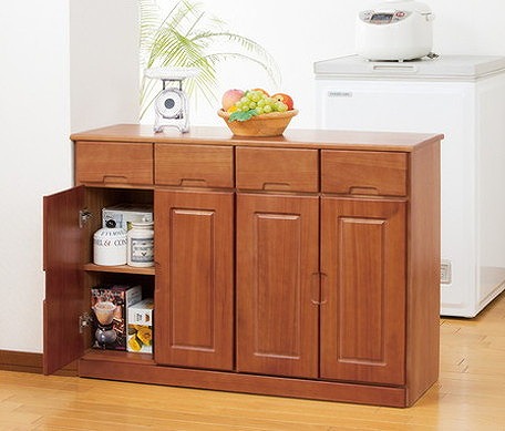 天然木カウンターワゴン 4枚扉