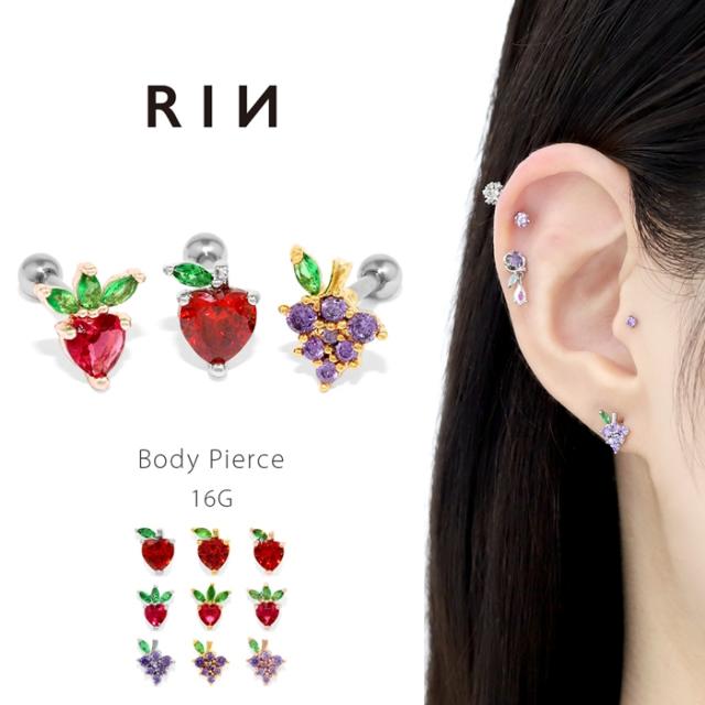 ボディピアス 軟骨ピアス 16G 果物 フルーツ リンゴ イチゴ ブドウ いちご グレープ ジュエル ストレートバーベル ピアス 金属アレルギー 人気 大人 女性 レディース アクセ プレゼント ギフト 片耳用