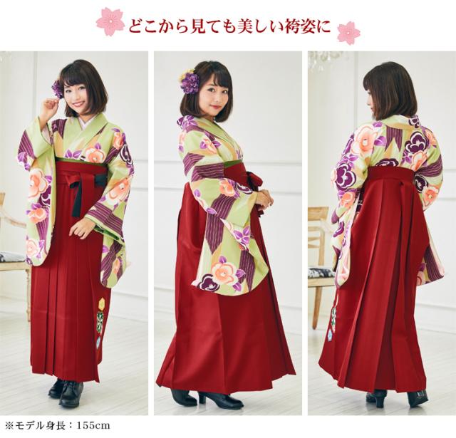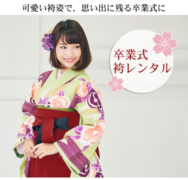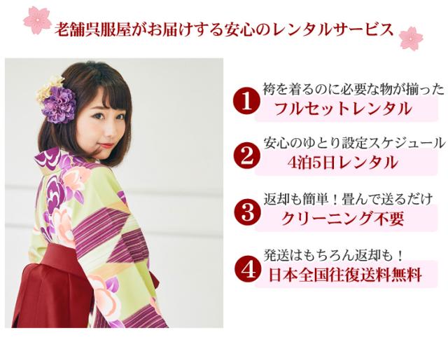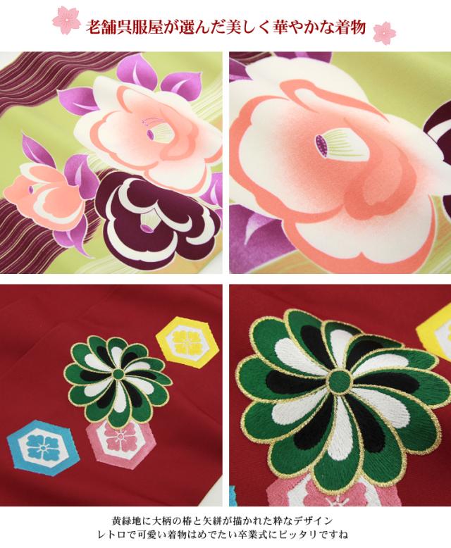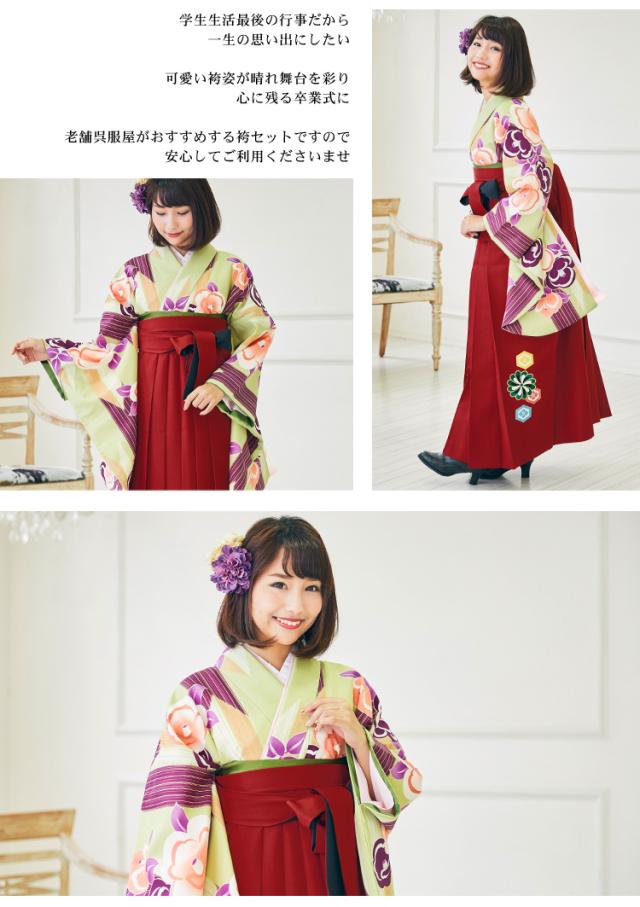 卒業式 袴 レンタル 女 袴セット 卒業式袴セット 2尺袖着物&袴 フルセットレンタル 「黄緑地に矢絣とピンク・紫椿」レトロ モダン 大学