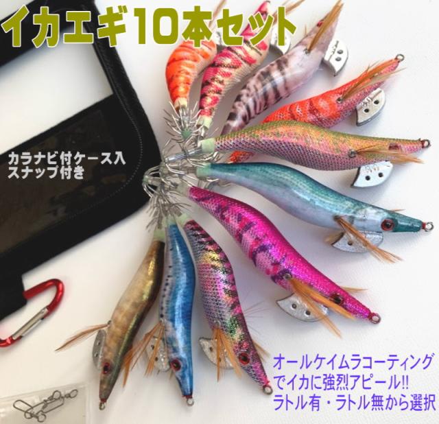【メール便発送可】エギ10本セット/オールケイムラコーティング・ラトル入・ラトル無から選択可/春・秋イカ向け/エギスナップ付/エギケース付/エギセット/エギングセット/3.5号3本/3.0号4本/2.5号3本入/リアルカラーss6