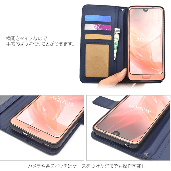 AQUOS R2 SH-03K/SHV42/706SH用ラティスデザイン手帳型ケース ラティス(格子)デザインがひと味違った印象になる、男女共にお使いいただけるレザーデザインの手帳型ケースです。 衝撃やキズなどからスマートフォンを守ります。また、内部はソフトケースなので、着脱が簡単です。 背面を折り返すとスタンドとして使用できるので、動画視聴に便利です。 落下防止に便利なストラップホール付きです。 横開きタイプなので、手帳のように使うことができます。また、内側に3つのカードポケットとサイドポケット付きです。 ■AQUOS R2 SH-03K/SHV42/706SH関連商品一覧 ■配送方法■ メール便/宅配便 からお選び頂けます。 ※配送方法について必ずお読みください 製品仕様【対応機種】 AQUOS R2 SH-03K/SHV42/706SH 【素材】 合皮(PUレザー)/TPU 【カラー】 ブラック/ホワイト/ブルー/ビビッドピンク 【サイズ(約)】 縦163×横84×厚さ19mm 【重さ(約)】 84g 【品番】 dsh03k-08a レビュー商品の評価: お店の情報休業日:土日祝■休業中の受付・発送・お問い合わせ等は翌営業日に順次対応いたします お店の評価: 連絡・応対 - 配送スピード - 梱包 - | |||