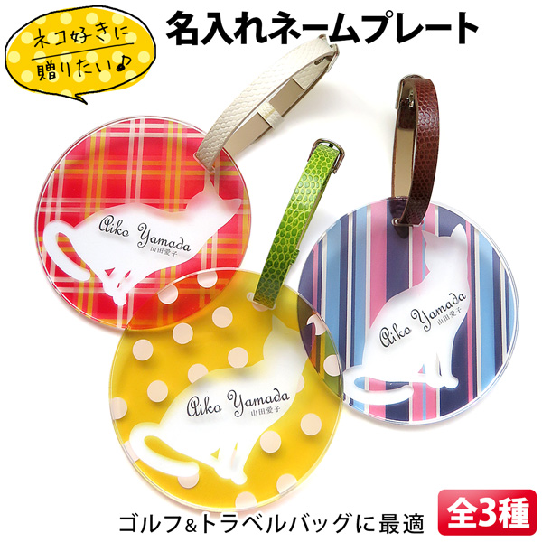 ネームプレート ネームタグ ゴルフ ネコ オリジナル ネームタグ スーツケース おしゃれ 丸型 アクリル 名入れ トラベルタグ