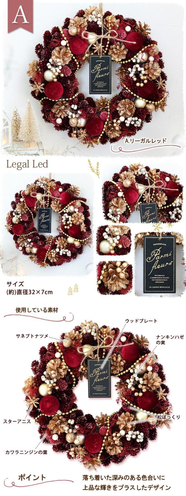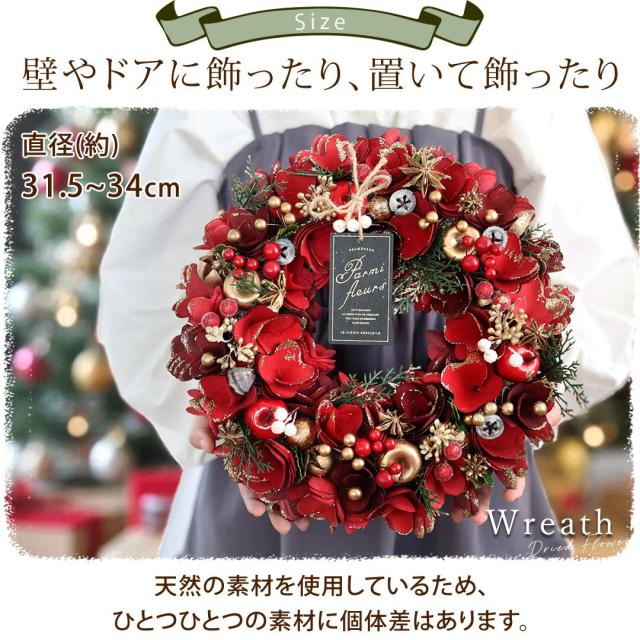 2025 クリスマス リース L 直径約31.5〜34cm 玄関 ドア クリスマスリース 玄関用 玄関ドア 壁掛け おしゃれ プレゼント お誕生日 誕生日 結婚祝い お祝い 花 お花 発表会 ギフト 女性 マンション 退職祝い 開店祝い お歳暮 飾り 【11/1〜お届けOK】