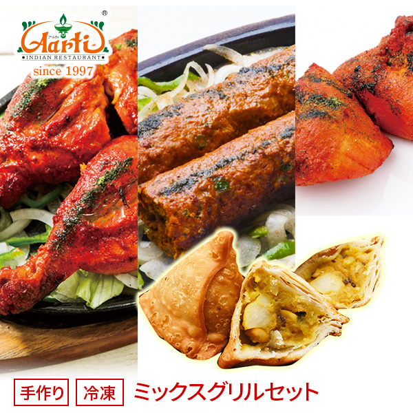 タンドリーチキンなどミックスグリルセット チキン料理3種とインドのコロッケサモサの4品セット 手作りを冷凍 アウトドア飯 キャンプ飯