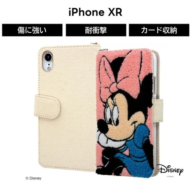 iPhoneXR ディズニー カバー ケース 手帳型 保護 モコモコ フワフワ サガラ刺繍 かわいい おしゃれ カード入れ スマホケース アイフォン iPhone XR ミニー