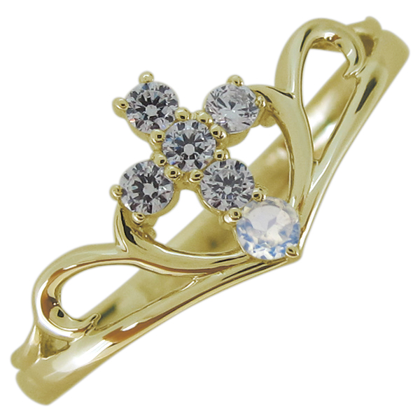6月誕生石ロイヤルブルームーンストーンを使用した18金製の、クロスモチーフのV字デザインリング(指輪)です。