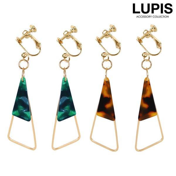 イヤリング 大きめ 揺れる ゴールド べっ甲 アクリル トライアングル フレーム ブラウン グリーン LUPIS ルピス