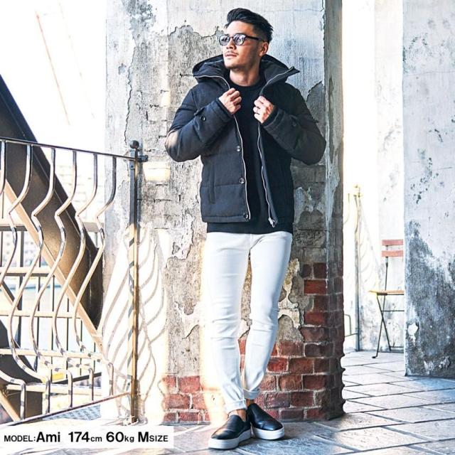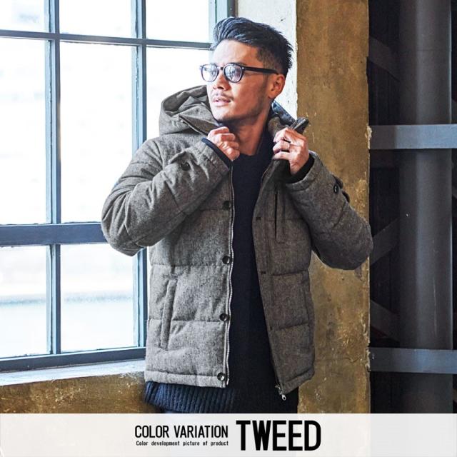 ダウンジャケット メンズ ブランド おしゃれ アウター ブルゾン ダウン フェザー 中綿 あったか 暖かい 防寒 軽い 軽量 シンプル 細身 タイト ブラック ネイビー グレー ツイード 黒 M L LL XL 秋 冬 CavariA 20代 30代 40代 メンズファッション 即日発送 [CAKI17-27]
