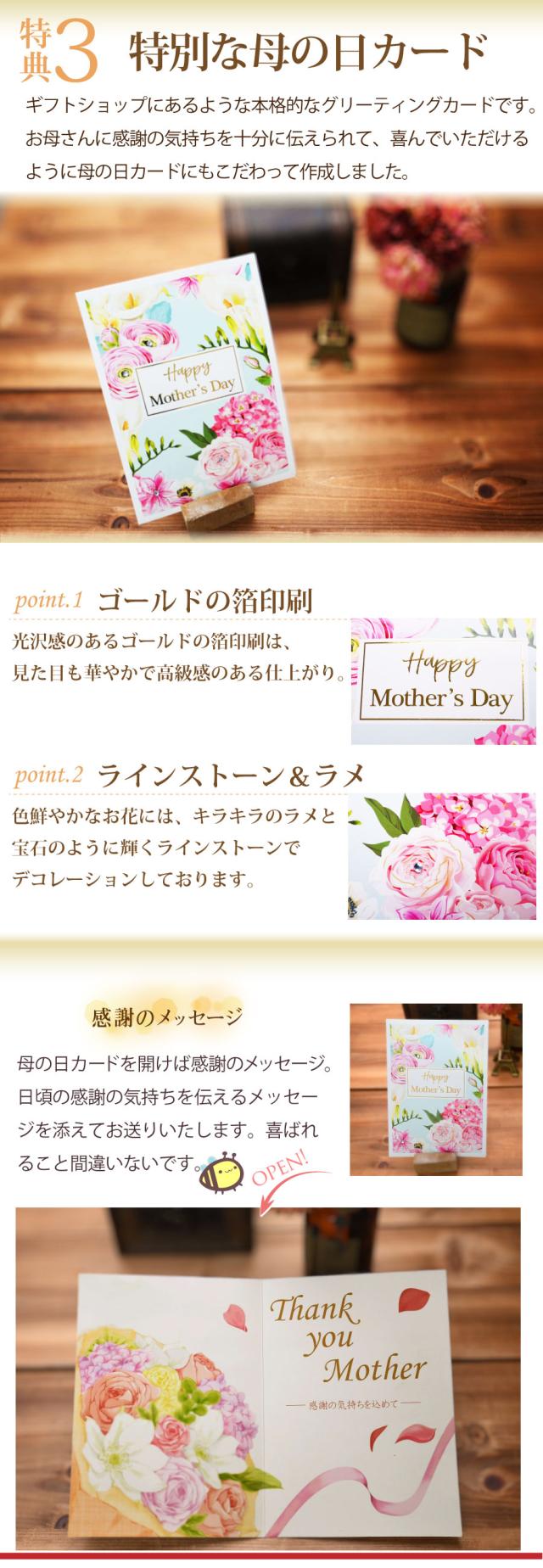| その他 | ・四葉のクローバーの球根1球 ・お花のカレンダー ※カレンダーは写真と異なる場合がございます ・母の日カード ※個別メッセージには対応できません。 ・ラッピングサービス |