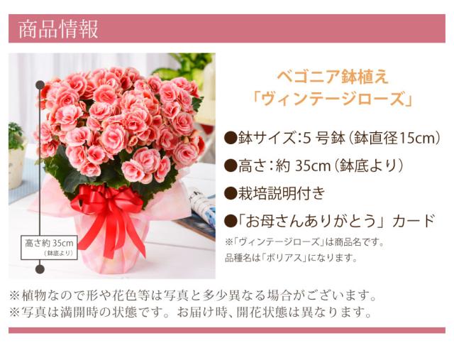 母の日 2026 花 ギフト プレゼント 鉢植え リーガースベゴニア 花色選べる カーネーション以外のお花