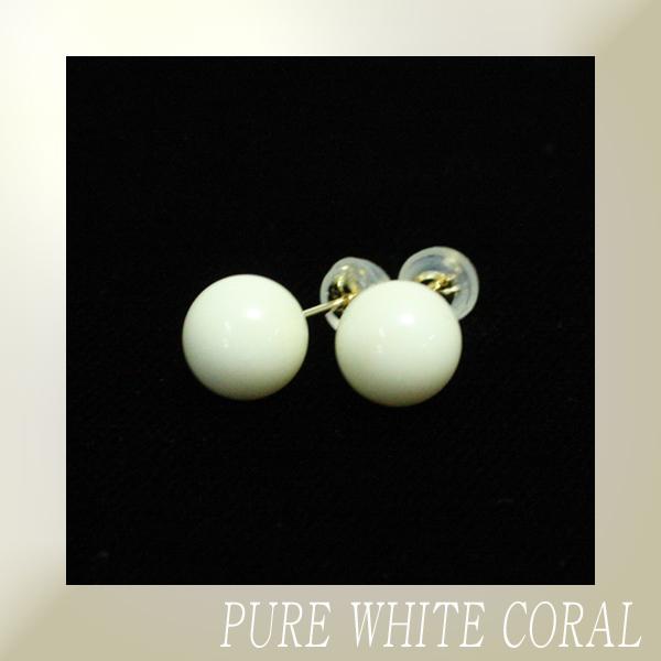 【宝石珊瑚】白珊瑚ピアス【丸玉 8mm】/サンゴ/さんご/コーラル/pure white/Corallium konojoi