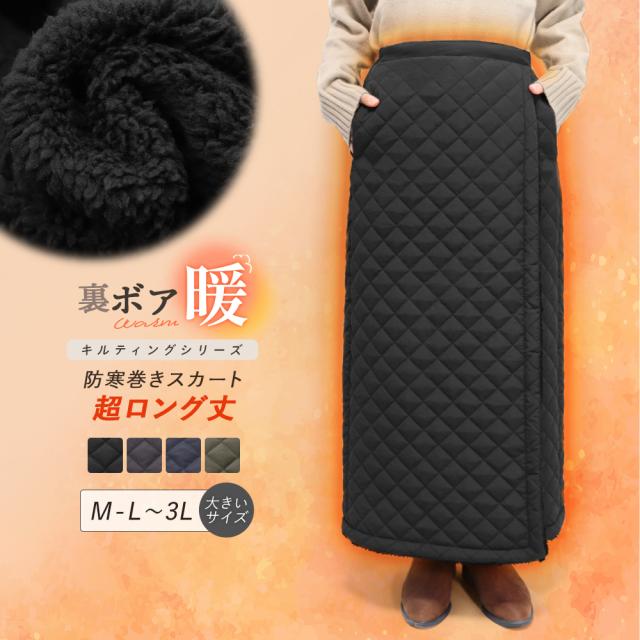 裏ボア キルティング 巻きスカート 超ロング丈 裏起毛 LL マキシ 撥水 静電気防止 防寒 冬 冬用 厚手 ロング ボトム レディース *00