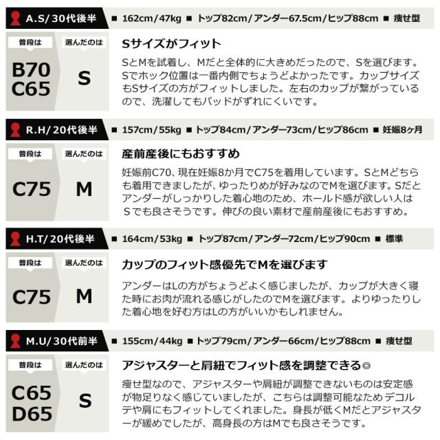 - リピートして購入しています。つけ心地が楽で、後ろホックなのでつけやすくて、ずっと使ってます。