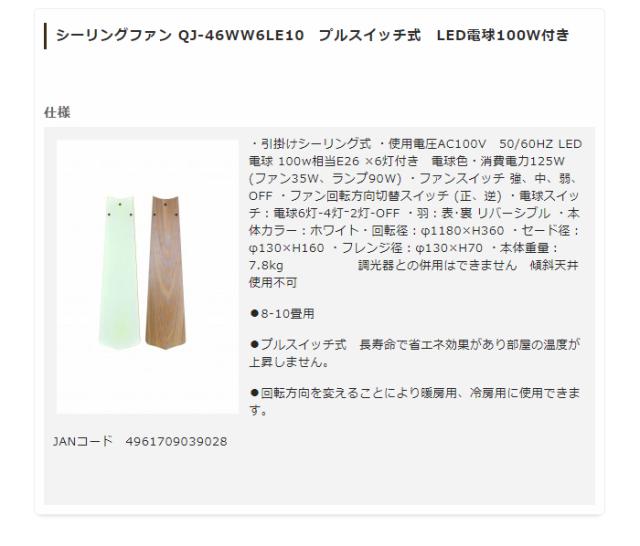 シーリングファンライト プルスイッチ式 照明 QJ-46WW6LE10 長寿命 省エネ(代引不可)【送料無料】