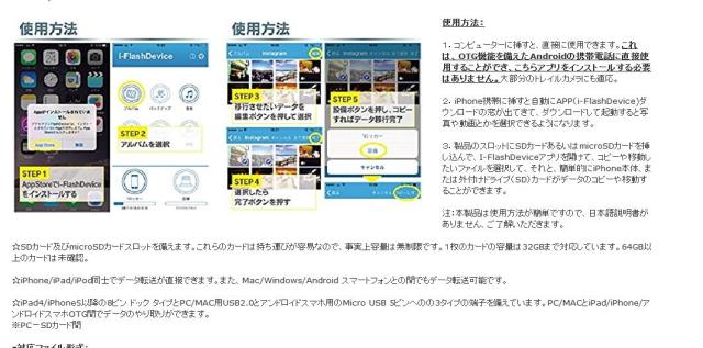 3.製品のスロットにSDカードあるいはmicroSDカードを挿し込んで、I-FlashDeviceアプリを開けて、コピーや移動したいファイルを選択して、それと、簡単的にiPhone本体、または外付けドライプ(SD)カードがデータのコピーや移動することができます。