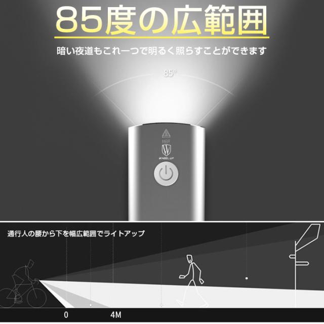 【配光パターンを改良&5つの点灯モード】普通の自転車用ライトと比べて、スポットライト的な配光パターンではないため、ナイトライドには向かない、路肩を照らす配光パターンになります。85度照射角で横方向の配光が広めですが、光の境界線があるので、対向車や歩行者に対して配慮した安全な光を照らすことで、眩しさを軽減し、事故を未然に防ぐことができます。ハイ・ミドル・ロー・低速点滅・高速点滅の5つ点灯モードがあります。モードメモリ機能付きにより、最後に設定したモードが記憶され、使用する際、再度設定する必要がありません。