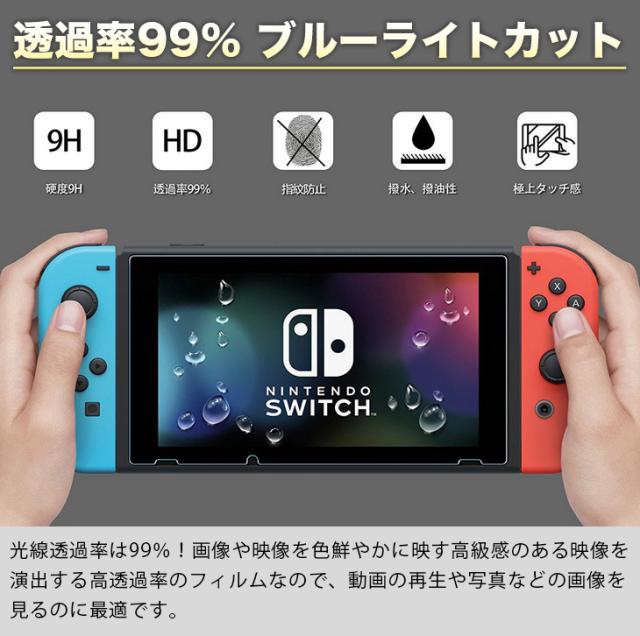 【送料無料】Nintendo Switch ガラス フィルム ブルーライト 92%カット 保護 任天堂 スイッチ 強化 保護 硬度9H ガラス飛散防止