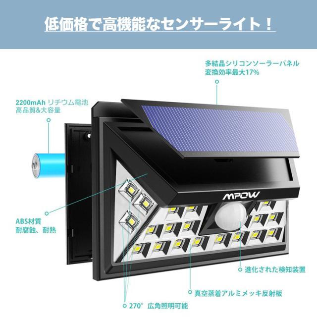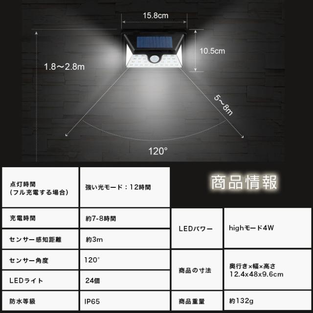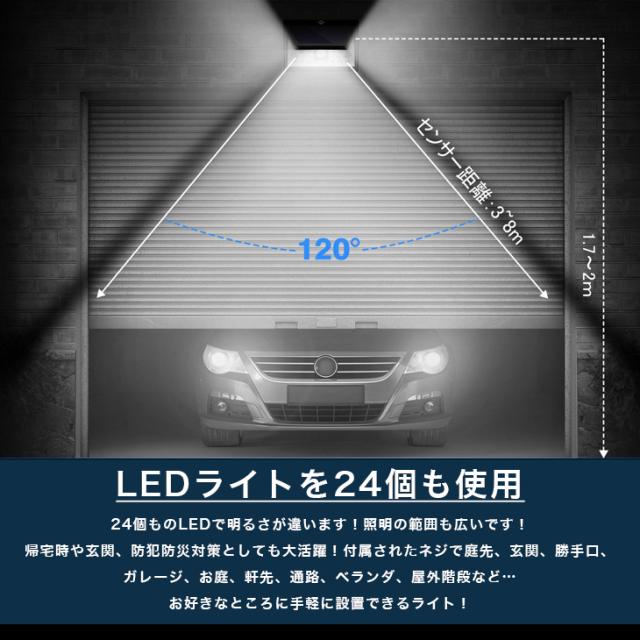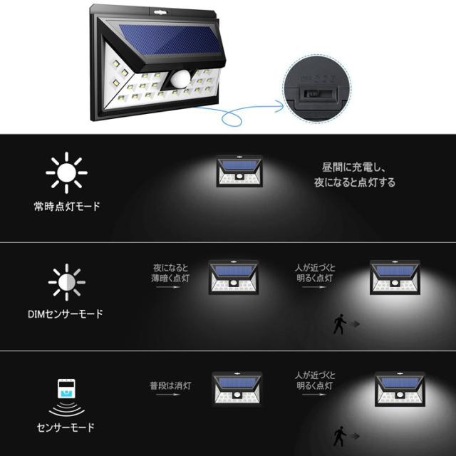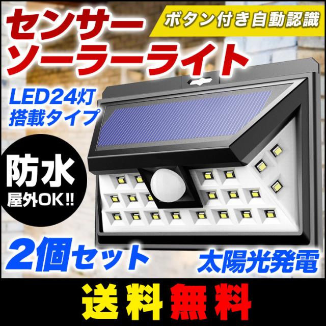 【送料無料】 センサー ソーラー ライト 人感 2個セット 自動知能モード 24 LED 屋外照明 防水 防犯 玄関ライト 夜間自動点灯