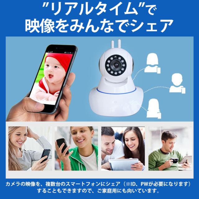 カメラの映像を、複数台のスマートフォンにシェア(※ID、PWが必要になります)することもできますので、ご家庭用にも向いています。