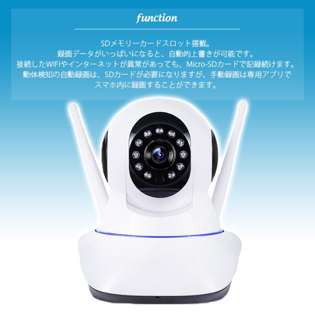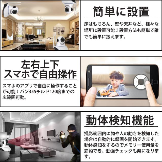 動体検知機能:撮影範囲内に物や人の動きを検知した場合は自動的に録画を開始。動体感知をするのでメモリー使用量を節約でき、動画チェックも楽になります。