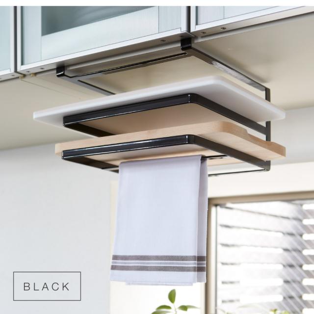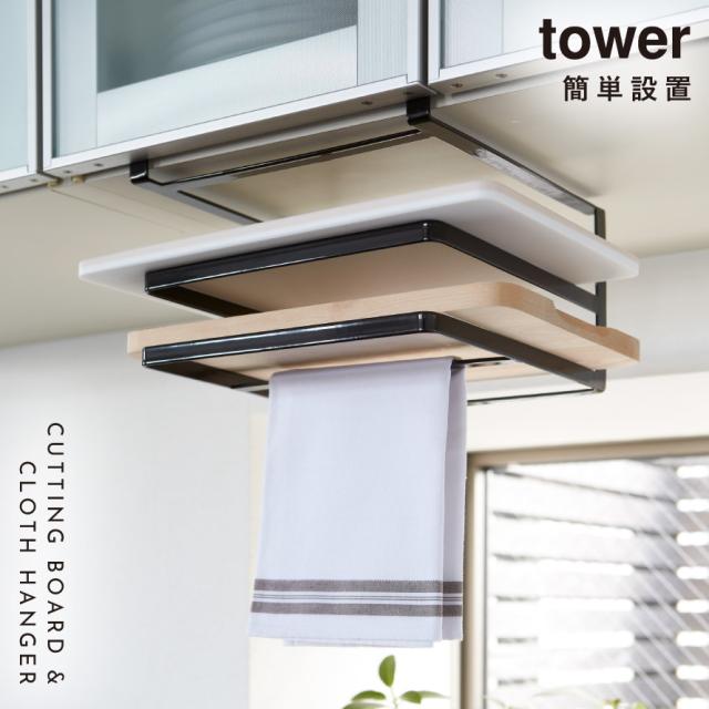 戸棚下まな板&布巾ハンガー タワー 山崎実業 tower まな板ホルダー 吊戸棚 まな板 収納 吊り下げ 戸棚下 布巾かけ おしゃれ モノトーン ホワイト ブラック 2493 2494