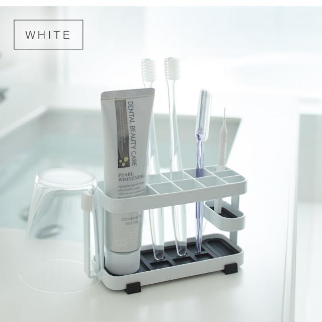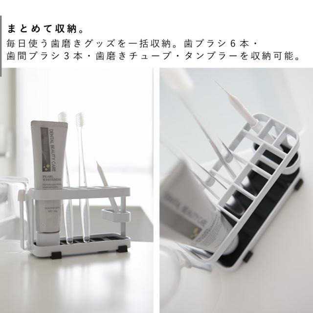 毎日使う歯ブラシ・歯間ブラシ・歯磨き粉などをスタイリッシュに一括収納できるスタンド。歯ブラシ6本・歯間ブラシ3本・歯磨きチューブ・タンブラーを収納できます。