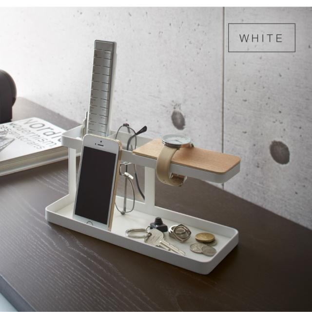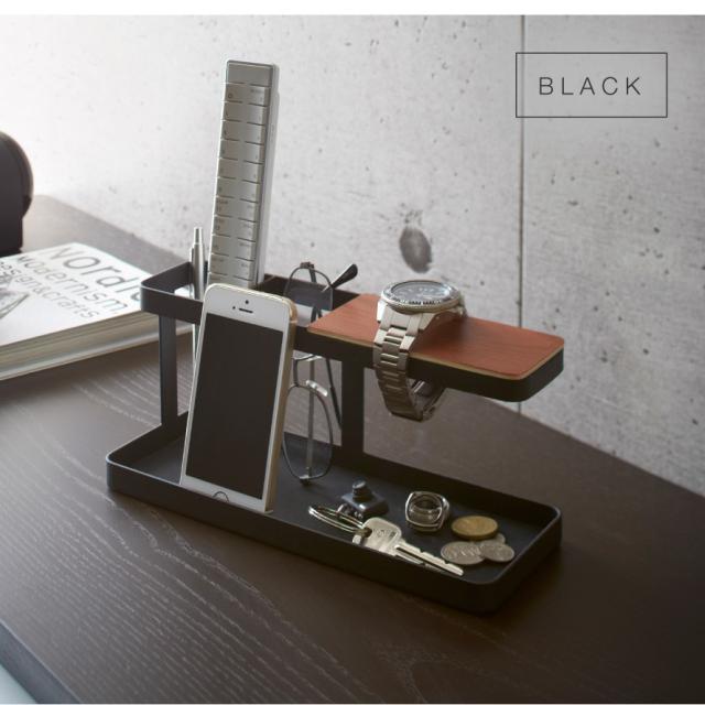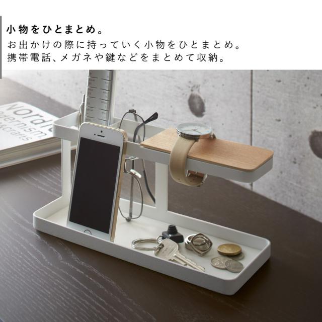 下部のトレイには、鍵や小銭を入れても。スマートフォンを縦に立てかけることもできます。