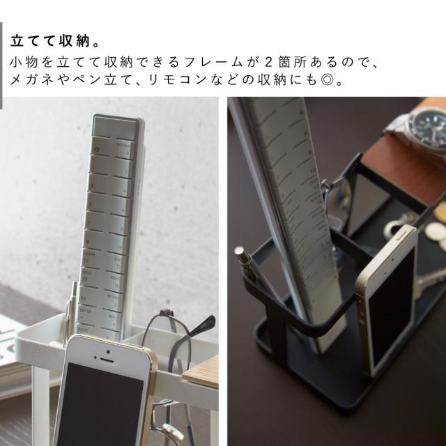 小物を立てて収納できるフレームが2箇所あるので、メガネやペン立て、リビングで使うリモコンなどの収納にも◎。