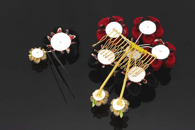 花の根元はワイヤー式ですので、ヘアスタイルに合わせてお好みの角度に微調節できます。
