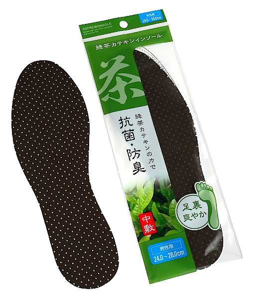 緑茶カテキンの効果で抗菌・防臭し、靴の中の嫌なニオイをやわらげます。