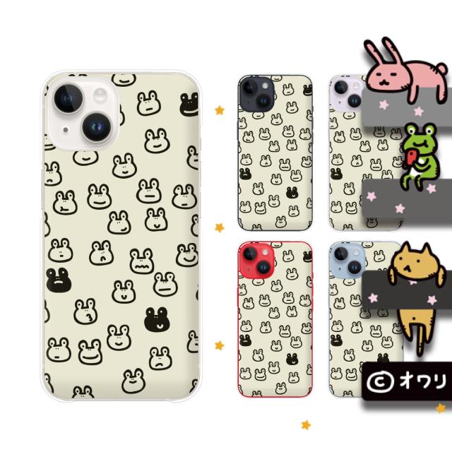 iPhone 14 / Plus / Pro / Pro Max / 13 / 12 / SE / 11 / XR / XS / XS / X / 8 スマホ ケース カバー アイフォンケース オワリ 「ゾロゾロ集まるカエル」 ホワイト