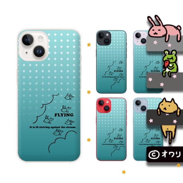 iPhone 14 / Plus / Pro / Pro Max / 13 / 12 / SE / 11 / XR / XS / XS / X / 8 スマホ ケース カバー アイフォンケース オワリ 「ウサギフライング」 ブルー