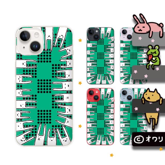 iPhone 14 / Plus / Pro / Pro Max / 13 / 12 / SE / 11 / XR / XS / XS / X / 8 スマホ ケース カバー アイフォンケース オワリ 「ウサギに囲まれる・ノーマルver.」 グリーン