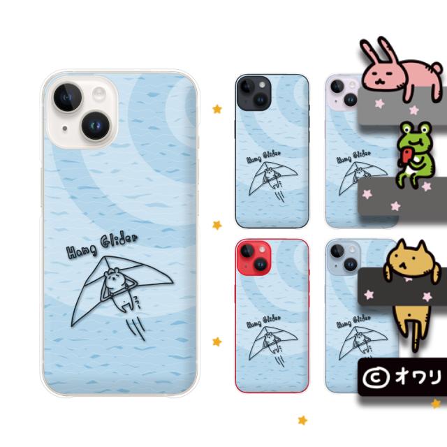 iPhone 14 / Plus / Pro / Pro Max / 13 / 12 / SE / 11 / XR / XS / XS / X / 8 スマホ ケース カバー アイフォンケース オワリ 「クマとハンググライダー」 ブルー