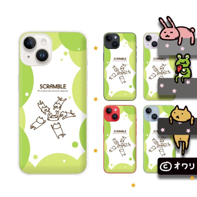 iPhone 14 / Plus / Pro / Pro Max / 13 / 12 / SE / 11 / XR / XS / XS / X / 8 スマホ ケース カバー アイフォンケース オワリ 「争奪戦 -ネコ-」 グリーン