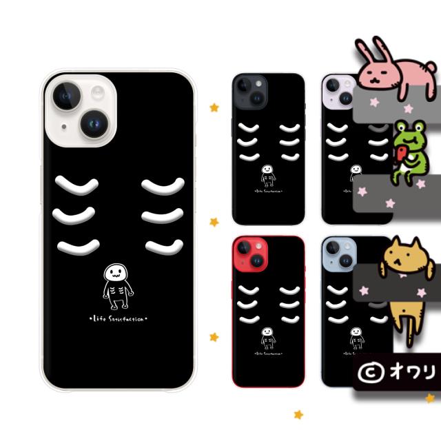 iPhone 14 / Plus / Pro / Pro Max / 13 / 12 / SE / 11 / XR / XS / XS / X / 8 スマホ ケース カバー アイフォンケース オワリ 「満足ドクロ」 ブラック