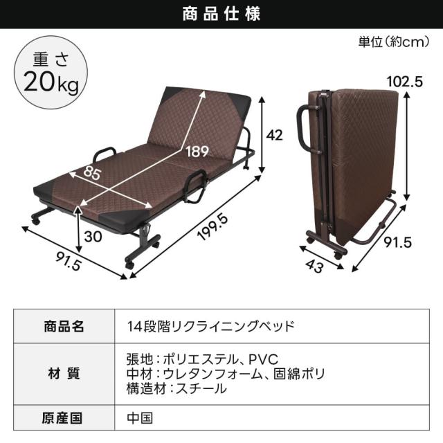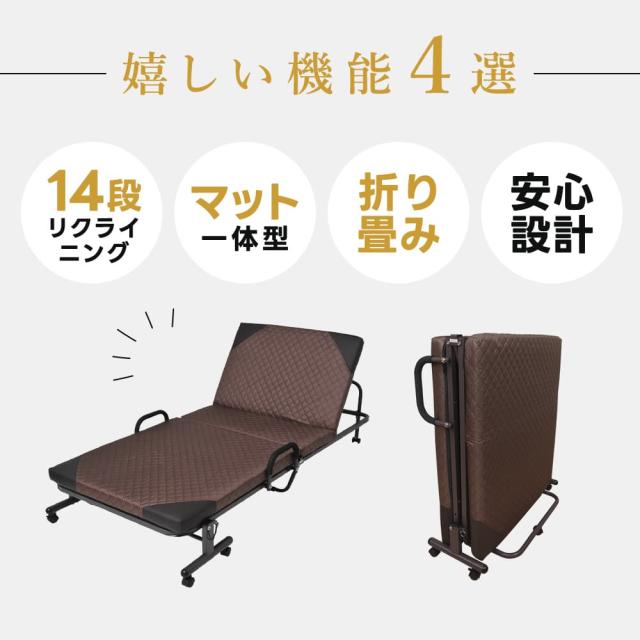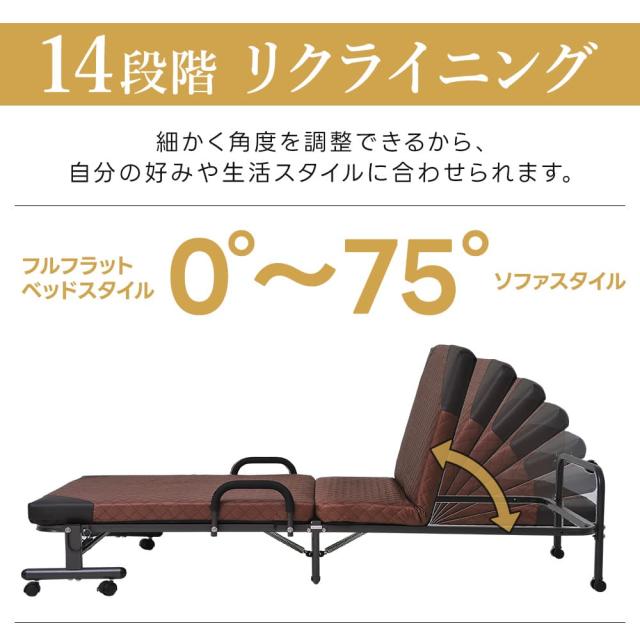 折りたたみベッド シングル 14段階リクライニング 一人暮らし 単身赴任 コンパクト 安い 保証 Sサイズ シンプル 折り畳み おしゃれ 布団干し ヘッドフレーム マットレス付き リクライニングベッド 簡易ベッド 在宅介護 折りたたみ ベッド
