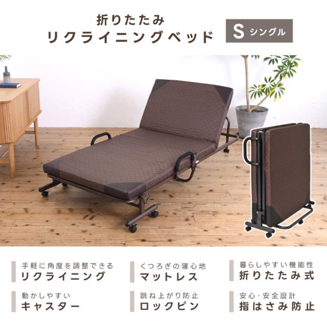 折りたたみベッド シングル 14段階リクライニング 一人暮らし 単身赴任 コンパクト 安い 保証 Sサイズ シンプル 折り畳み おしゃれ 布団干し ヘッドフレーム マットレス付き リクライニングベッド 簡易ベッド 在宅介護 折りたたみ ベッド