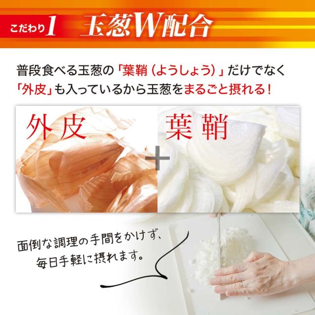 本品は、通常の食事ではとることができない、タマネギの外皮を添加した粒タイプの健康補助食品です。