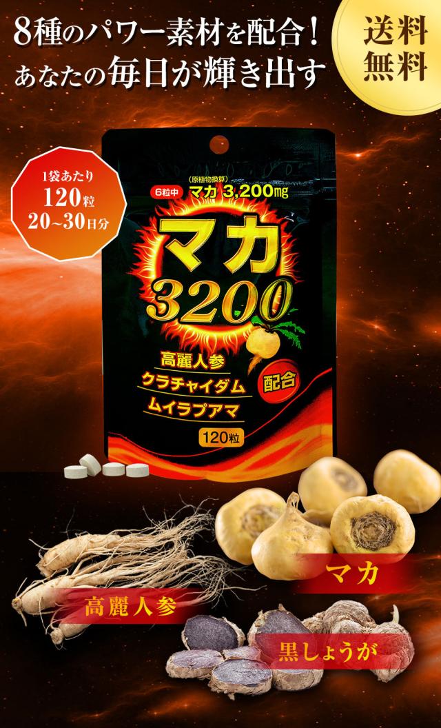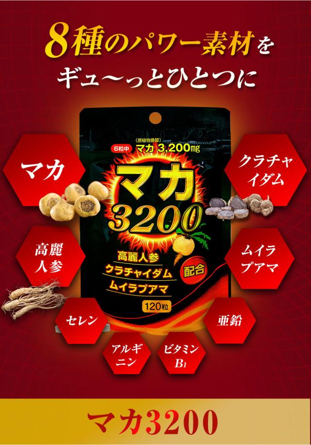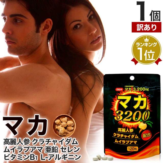 訳あり マカ3200 120粒 約20〜30日分 賞味期限2027年11月以降 送料無料 メール便 | マカ maka アルギニン ビタミンB1 マカサプリ 妊活 亜鉛 オタネニンジン 高麗人参 ムイラプアマ クラチャイダム 黒生姜 セレン サプリ サプリメント 粒 男性 女性 アウトレット