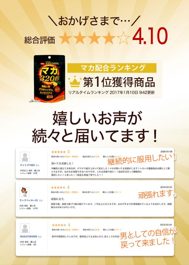 - 届くのが速かったです。マカ3200早速、飲んでみました、効果有ることを期待します。 573345512