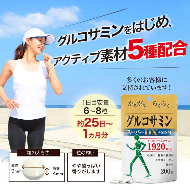訳あり グルコサミンスーパーDX+MSM 200粒 約22〜30日分 賞味期限2026年5月のみ 送料無料 メール便 | グルコサミン コンドロイチン アクティブ 豚 軟骨 エキス MSM 2型コラーゲン ii型コラーゲン 飲むコラーゲン サプリ サプリメント 男性 女性 健康 アウトレット