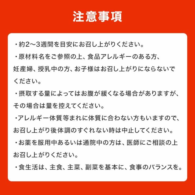 | 《商品について》 ●本品はトウガラシ成分が入っている為、胃の不快感などがある場合は空腹時の飲用はお控え下さい。 ●摂取する量によってはお腹が緩くなる場合がありますが、その場合は量をお控えください。 《保存方法》 ●吸湿しやすい成分が含まれているため、開封後はチャックをしっかりと閉めて保存してください。 ●小さなお子様の手の届かない所に保存してください。 《お召し上がり方》 ●健康補助食品として1日7〜10粒を目安に、2〜3回に分けて、水などと共にお召し上がりください。 ●空腹時及び一度に大量のお召し上がりはお控えください。最初は少量よりお召し上がりください。 《ご利用上のお願い》 ●約2〜3週間を目安にお召し上がりください。 ●原材料名をご参照の上、食品アレルギーのある方、妊産婦、授乳中の方、お子様はお召し上がりにならないでください。 ●摂取する量によってはお腹が緩くなる場合がありますが、その場合は量を控えてください。 ●アレルギー体質等まれに体質に合わない方もいますので、お召し上がり後体調のすぐれない時は中止してください。 ●お薬を服用中あるいは通院中の方は念のため医師にご相談の上お召し上がりください。 ●食生活は、主食、主菜、副菜を基本に、食事のバランスを。 ●自然由来の原材料を使用している為、商品ごとで粒の色が多少異なる場合がございますが、品質に問題ございませんのでご安心ください。 |