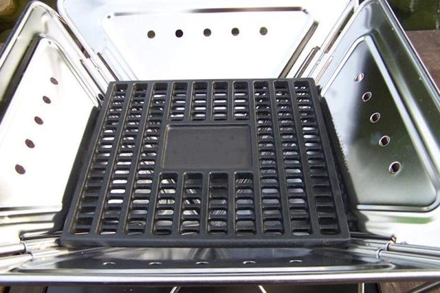 ・正方形の形状は確実に焚火台にセットでき、直接上にダッチオーブンを載せてもしっかりと安定し、さらに無駄な木炭を使用することなく調理することができます。