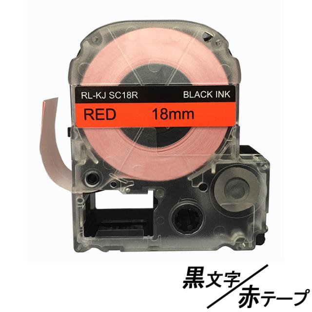 18mm キングジム用 黒文字 赤テープ テプラPRO互換 テープカートリッジ 互換品 SC18R 長さが8M 強粘着版