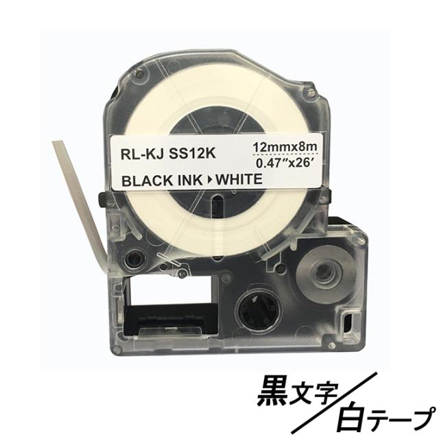 12mm キングジム用 白地黒文字 テプラPRO互換 テープカートリッジ 互換品 SS12K 長さが8M 強粘着版