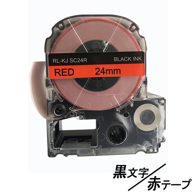 24mm キングジム用 黒文字 赤テープ テプラPRO互換 テープカートリッジ 互換品 SC24R 長さが8M 強粘着